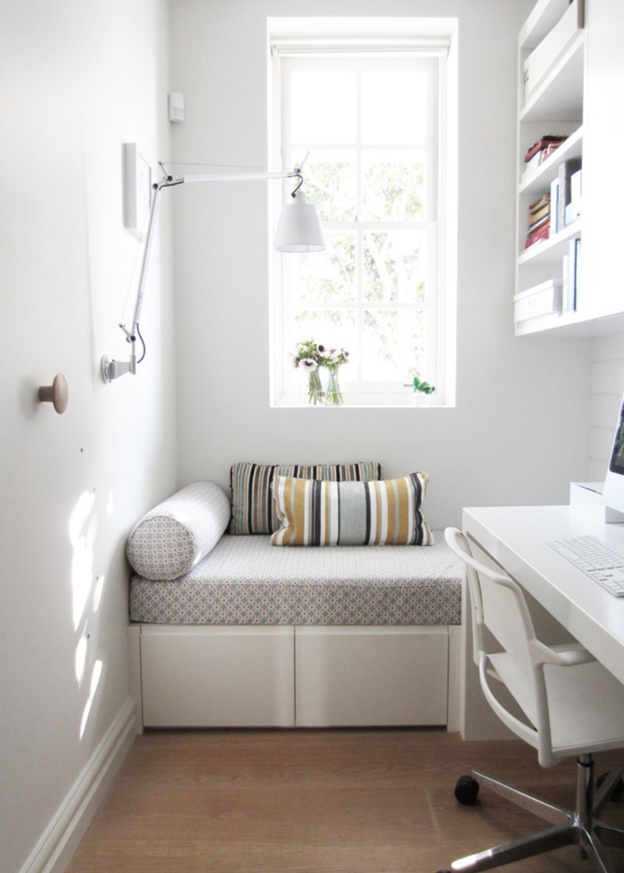 Окна небольшого размера дизайнеры и декораторы часто предпочитают оставлять их полностью открытыми, ничем не завешивая. Подобный вариант будет действительно хорош для комнаты со светлыми нейтральными стенами: тогда окно не привлечет внимания к своей форме. Огромный плюс — большое количество естественного света, беспрепятственно поступающего в комнату.