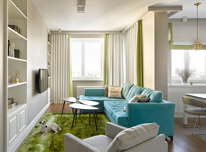 Кроме этого, асимметрия в комнате правильной формы неизменно привлекает внимание и становится акцентом в интерьере.