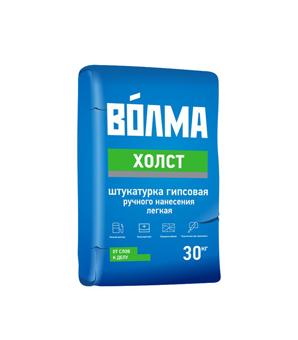 «Волма-Холст» – сухая штукатурная смесь на основе гипсового вяжущего, легкого заполнителя с применением минеральных и химических добавок, обеспечивающих высокую адгезию, водоудерживающую способность и оптимальное время работы.