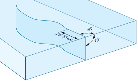 Подобное разрушение от термошока можно идентифицировать, посмотрев на край разрушенного стекла: разлом стекла во всех случаях будет перпендикулярен как самой плоскости стекла, так и его краю (рис. 6).