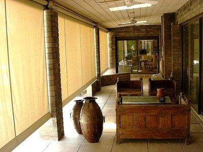 • Больших загородных коттеджах. Некоторые люди любят выстраивать дома полностью из стекол, но в жаркий день приходится защищаться от света, а в дождливый от постоянных ветров и шквалов.